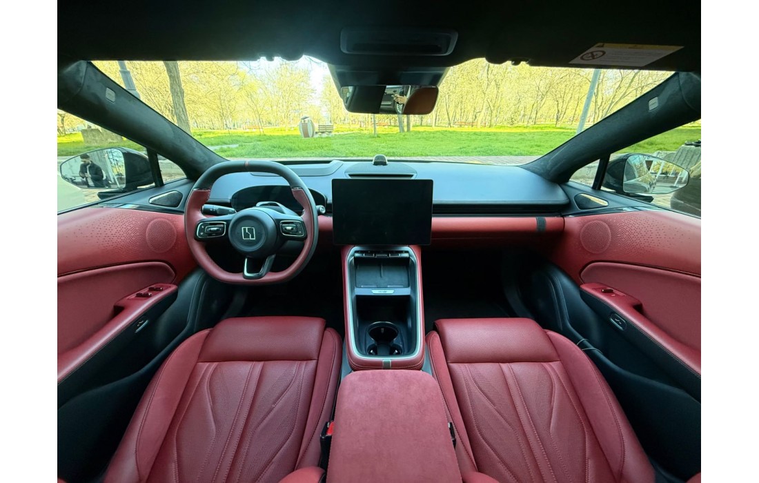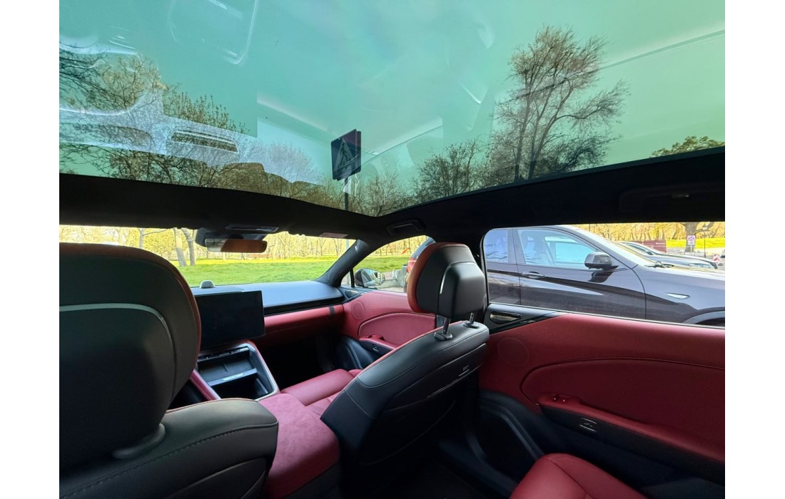 ZEEKR 007 GT усередині сприймається як сучасний гран-турер: водійська зона зроблена «під себе» — зі зручною посадкою, продуманою центральною консоллю та спортивним кермом із фізичними кнопками, щоб керувати функціями без зайвих відволікань. Цифрова частина також на рівні флагмана: окремий екран панелі приладів і великий центральний OLED-дисплей створюють відчуття швидкого та зрозумілого інтерфейсу, а проєкційний дисплей і голосовий асистент допомагають тримати увагу на дорозі.